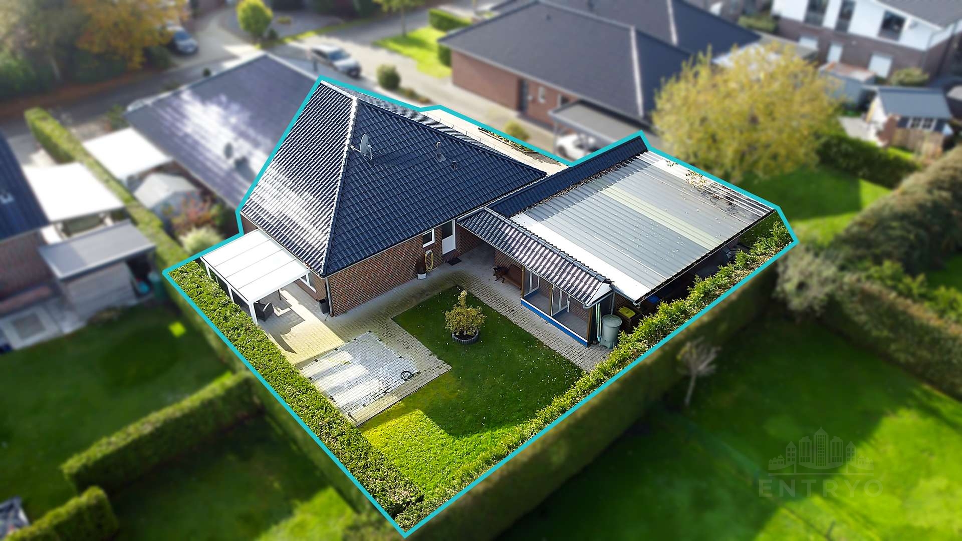 Die Umgebung ist geprägt von gepflegter Nachbarschaftsbebauung und bietet eine angenehme Wohnatmosphäre.