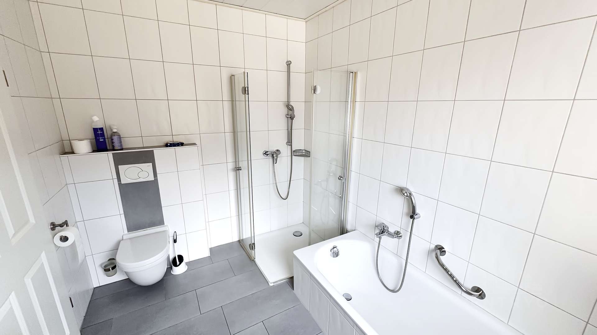 – Badezimmer mit Badewanne und Dusche