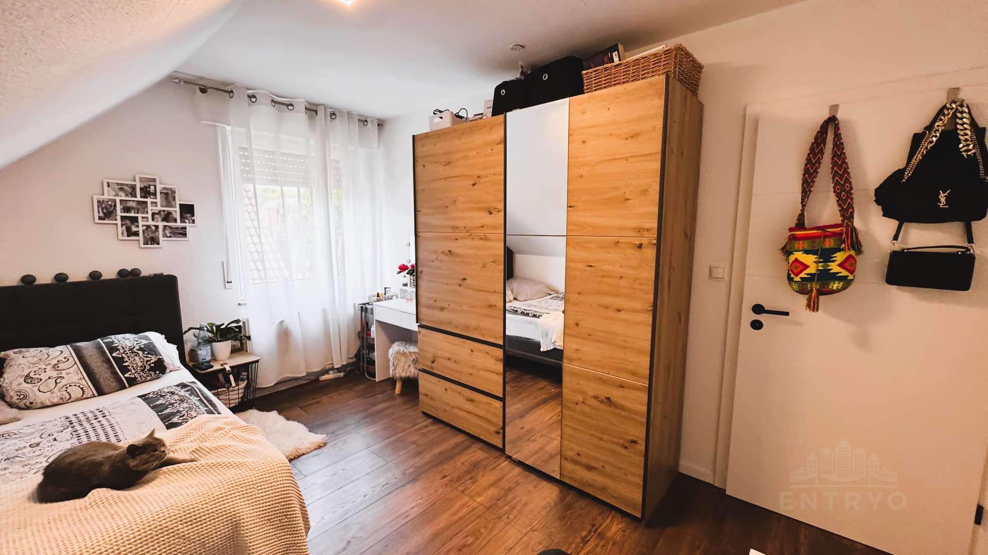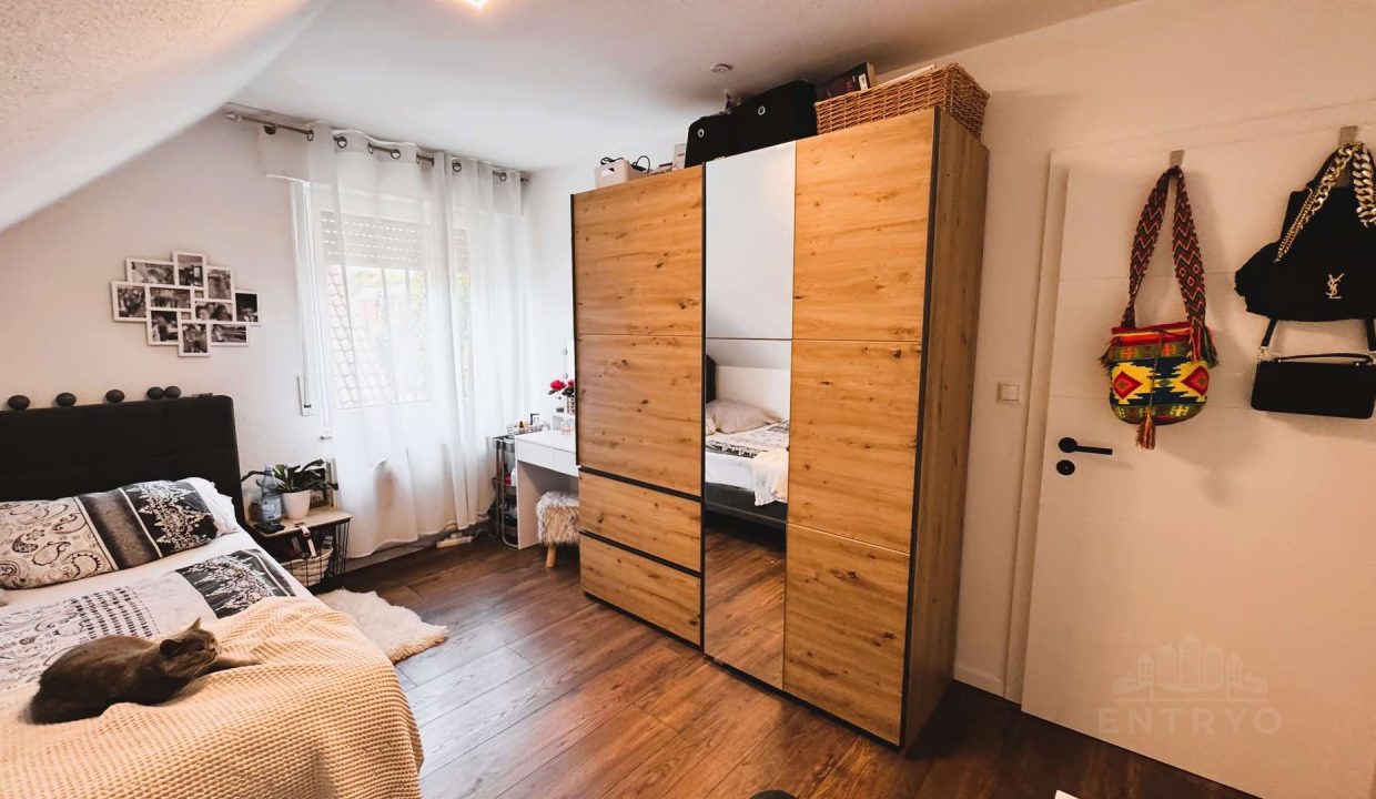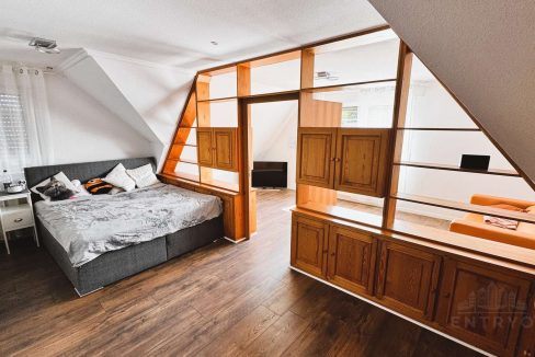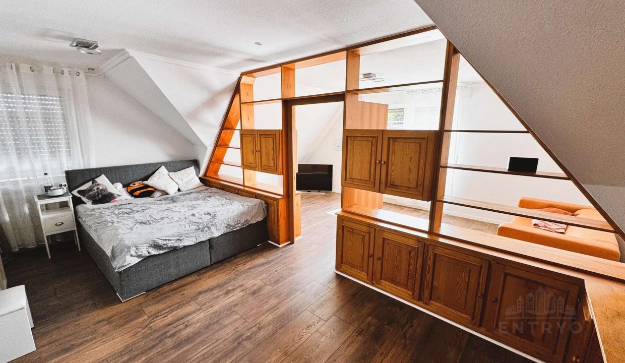 – Vier Schlafzimmer im Dachgeschoss, darunter ein großes Elternzimmer mit ca. 38 m² und maßgefertigten Echtholz-Einbauschränken