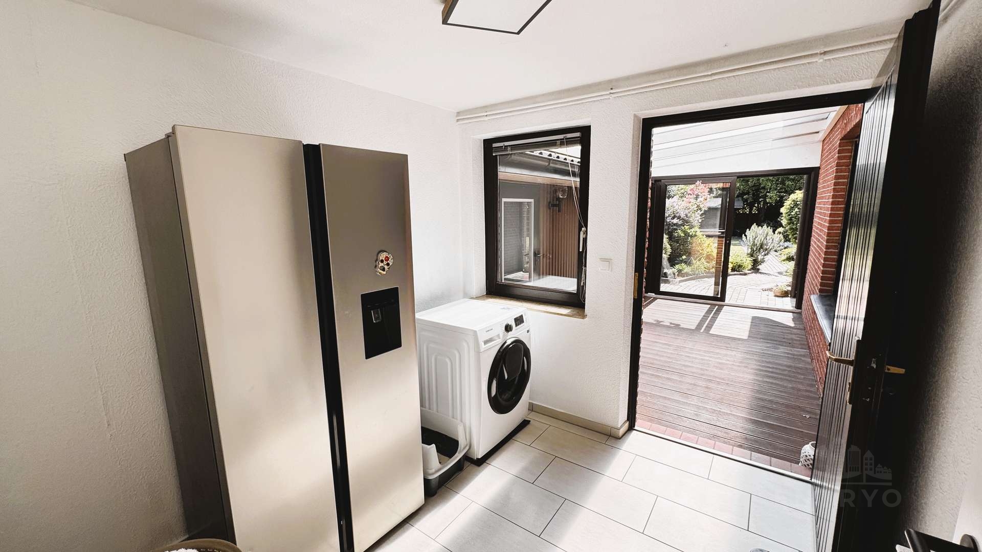 – Hauswirtschaftsraum, Waschküche, Geräteraum und Garage (ca. 15 m²) – alles überdacht und trocken zugänglich