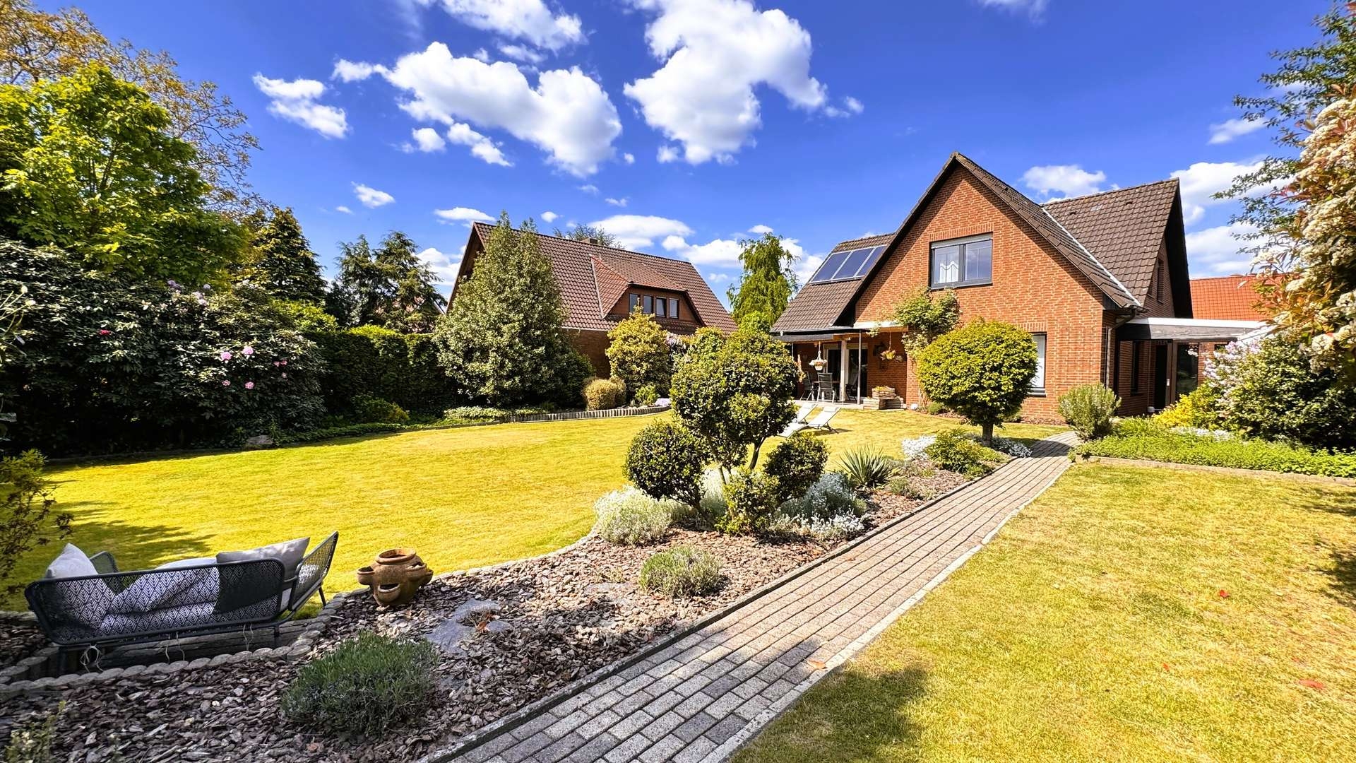 Willkommen in einem Zuhause, das Ihnen nicht nur Raum zum Wohnen, sondern Raum zum Leben bietet. Dieses gepflegte Einfamilienhaus in einer der gefragtesten Wohnlagen von Löningen verbindet klassische Bauqualität mit moderner Ausstattung, durchdachter Raumaufteilung und einer herrlich ruhigen Lage – nur wenige Minuten vom Stadtzentrum entfernt.