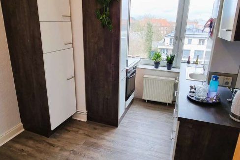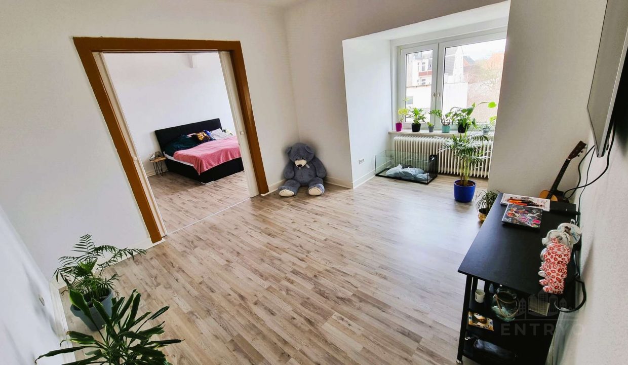 Die Wohnung verfügt über ein geräumiges Wohnzimmer, wodurch Sie dann das gemütliche Schlafzimmer erreichen. Hier können Sie sowohl entspannte Abende als auch gesellige Runden mit Freunden genießen. Die beiden Zimmer sind hell und freundlich gestaltet, ideal für ein komfortables Zuhause. Eine hochwertige und moderne Einbauküche inklusive Geräten steht Ihnen hier zur Verfügung.