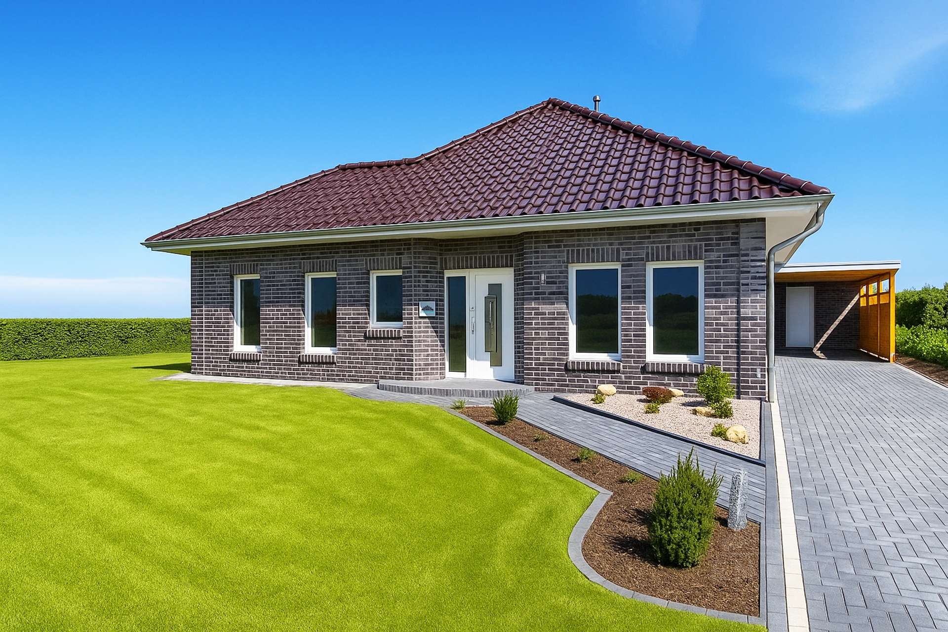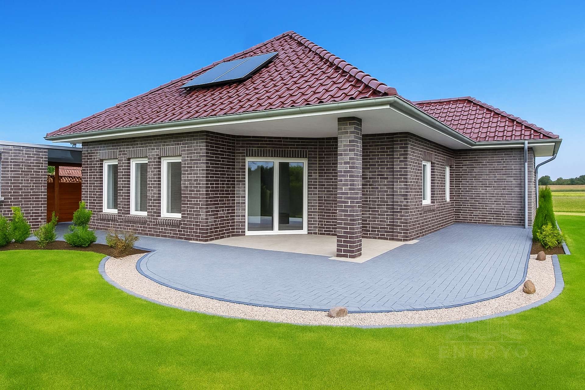Im Innenausbau überzeugt der Bungalow mit hochwertigen Materialien und kompletter Ausstattung: In den Sanitärräumen werden elegantes Markenporzellan und moderne Fliesen verwendet. Die Wände sind glatt verputzt (Gipsputz Q2), alle Malerarbeiten sind bereits im Preis enthalten. Hochwertige Vinylböden mit Trittschalldämmung sowie stilvolle Fußleisten runden das stimmige Gesamtbild ab. Auch die Pflasterarbeiten im Außenbereich sind bereits Bestandteil des Angebots.