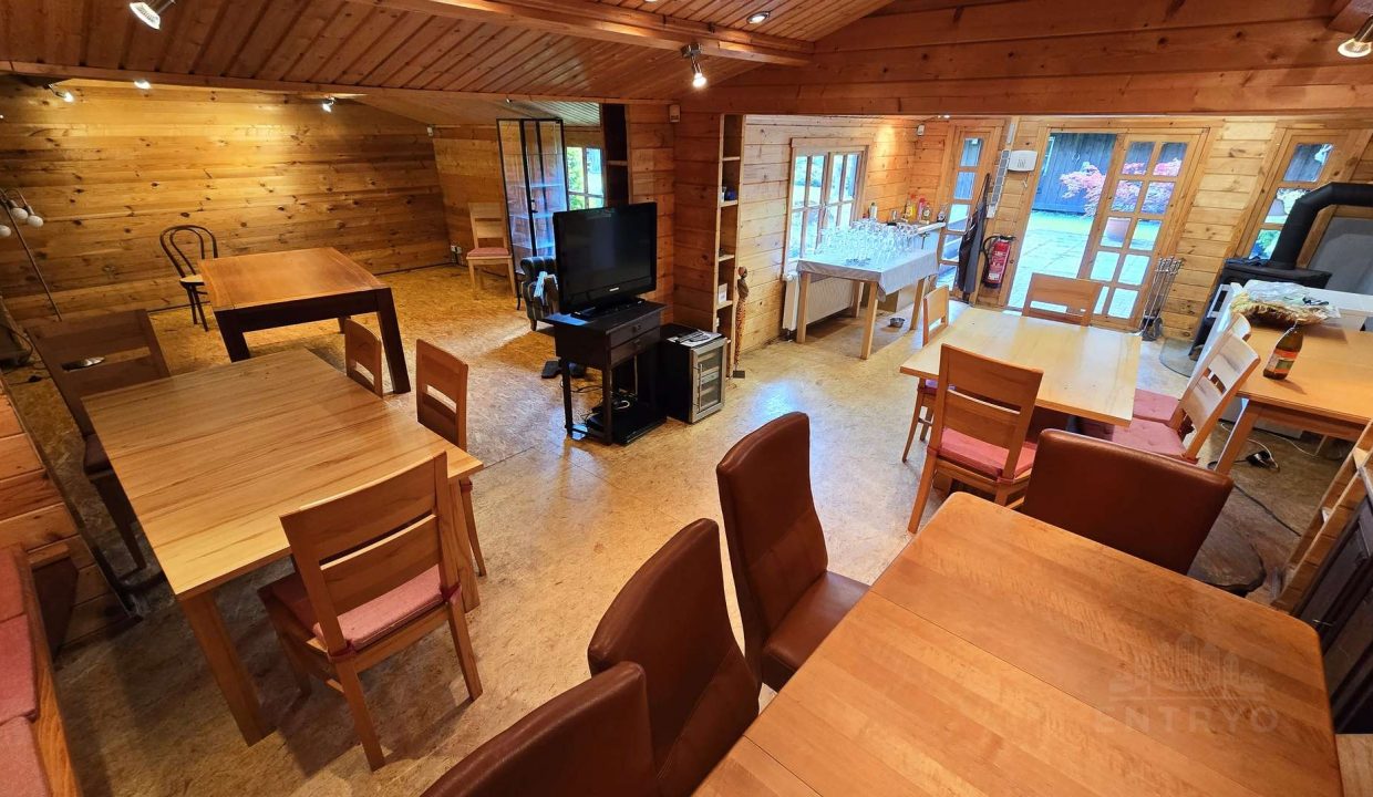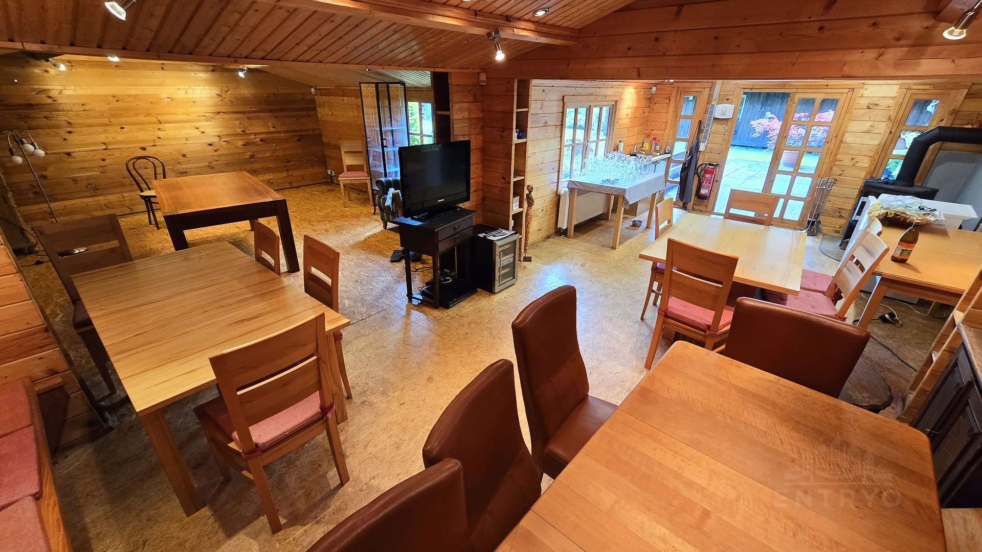 Ein beeindruckendes Gartenhaus im Stil einer Jagdhütte mit Ofenanschluss, Heizkörpern sowie Warm- und Kaltwasseranschluss – ideal als Rückzugsort, Hobbyraum oder Gästehaus.