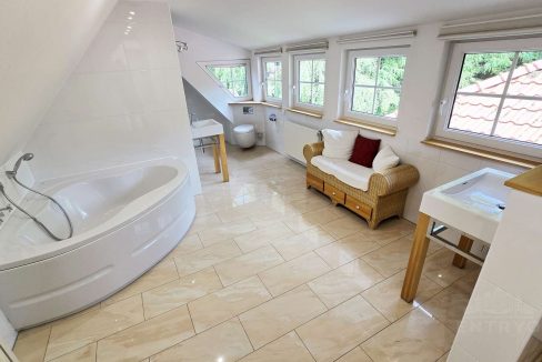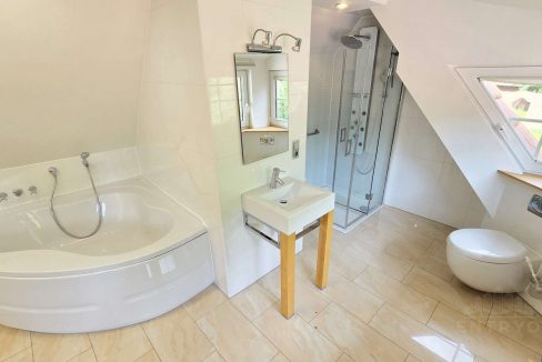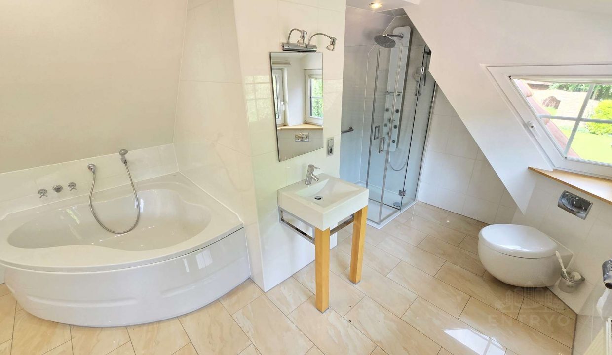 Eine moderne Brennwert-Gaszentralheizung der Marke Brötje (Baujahr 2007) inkl. Warmwasserspeicher sorgt für angenehme Wärme im gesamten Haus. Hochwertige Schalter- und Steckdosenelemente, ein Glasfaseranschluss sowie Anschlüsse für Strom, Gas, Wasser und SAT-TV komplettieren die technische Ausstattung.