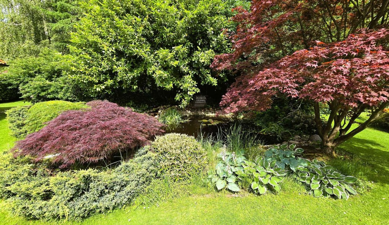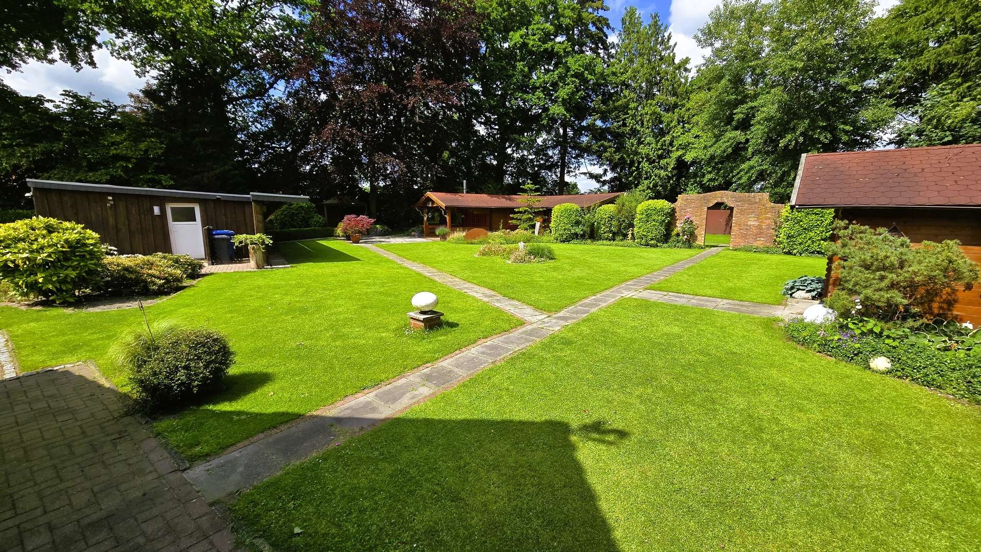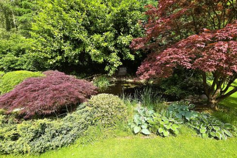 Das großzügige Grundstück bietet alles, was das Herz begehrt: Zwei große Terrassen mit unterschiedlicher Ausrichtung laden zum Verweilen ein. Der herrlich angelegte Garten mit Staudenbeeten, Rhododendren, Obstbäumen, gepflegtem Rasen und kleinen Gartennischen bildet eine grüne Oase der Ruhe.