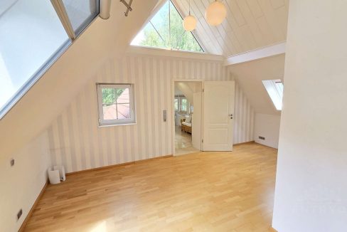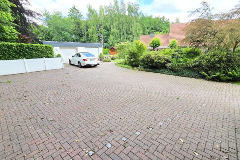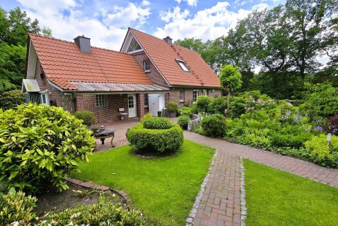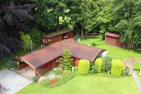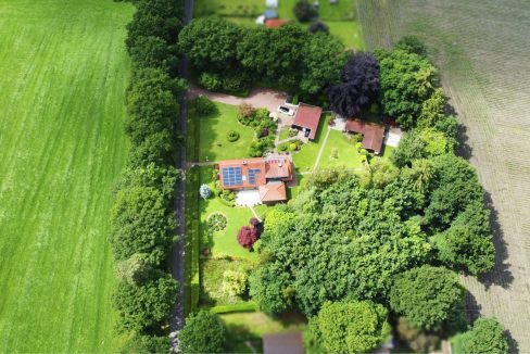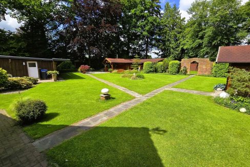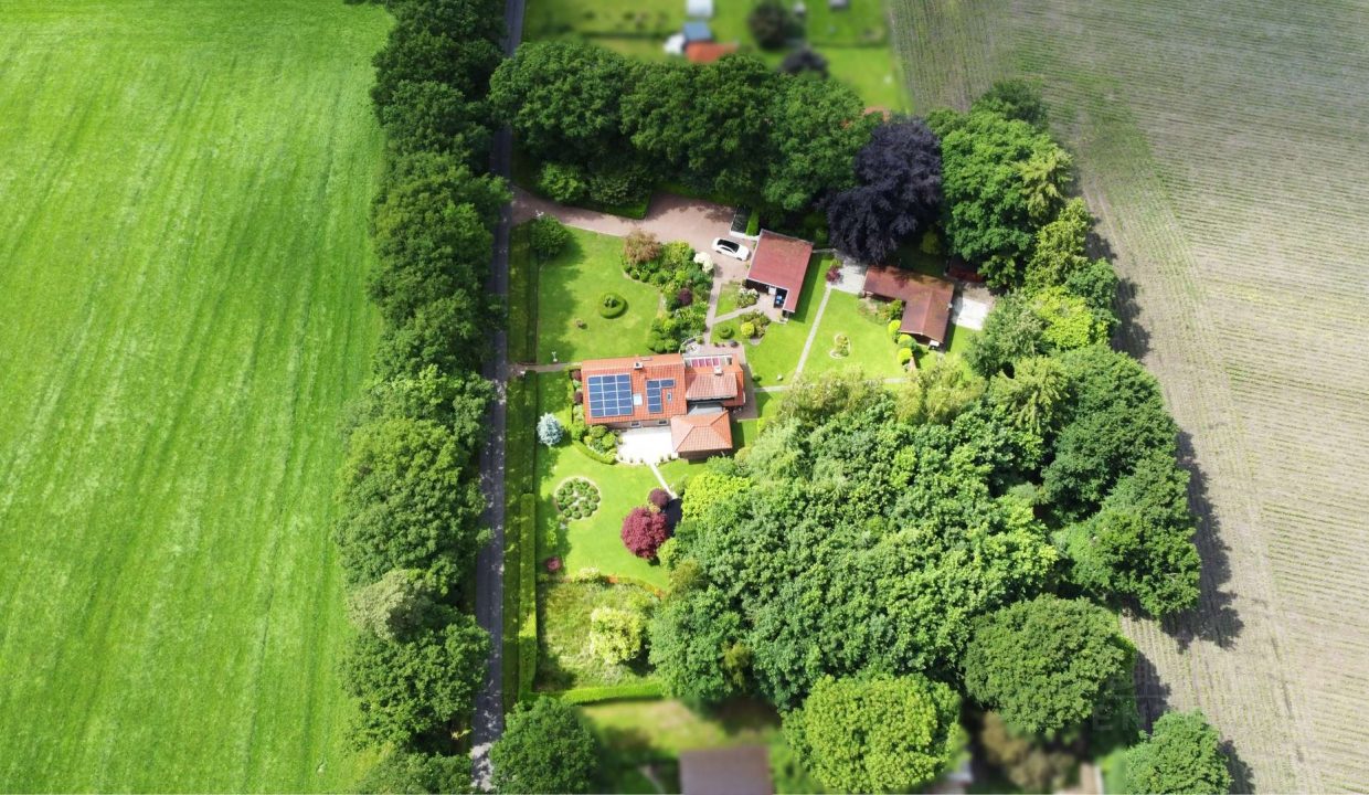 Ein kleines Waldstück mit angelegten Wegen – bepflanzt mit Lerchen, Birken und Ahorn – verleiht dem Grundstück zusätzlichen Reiz.