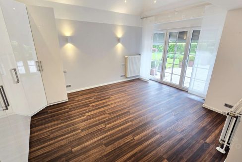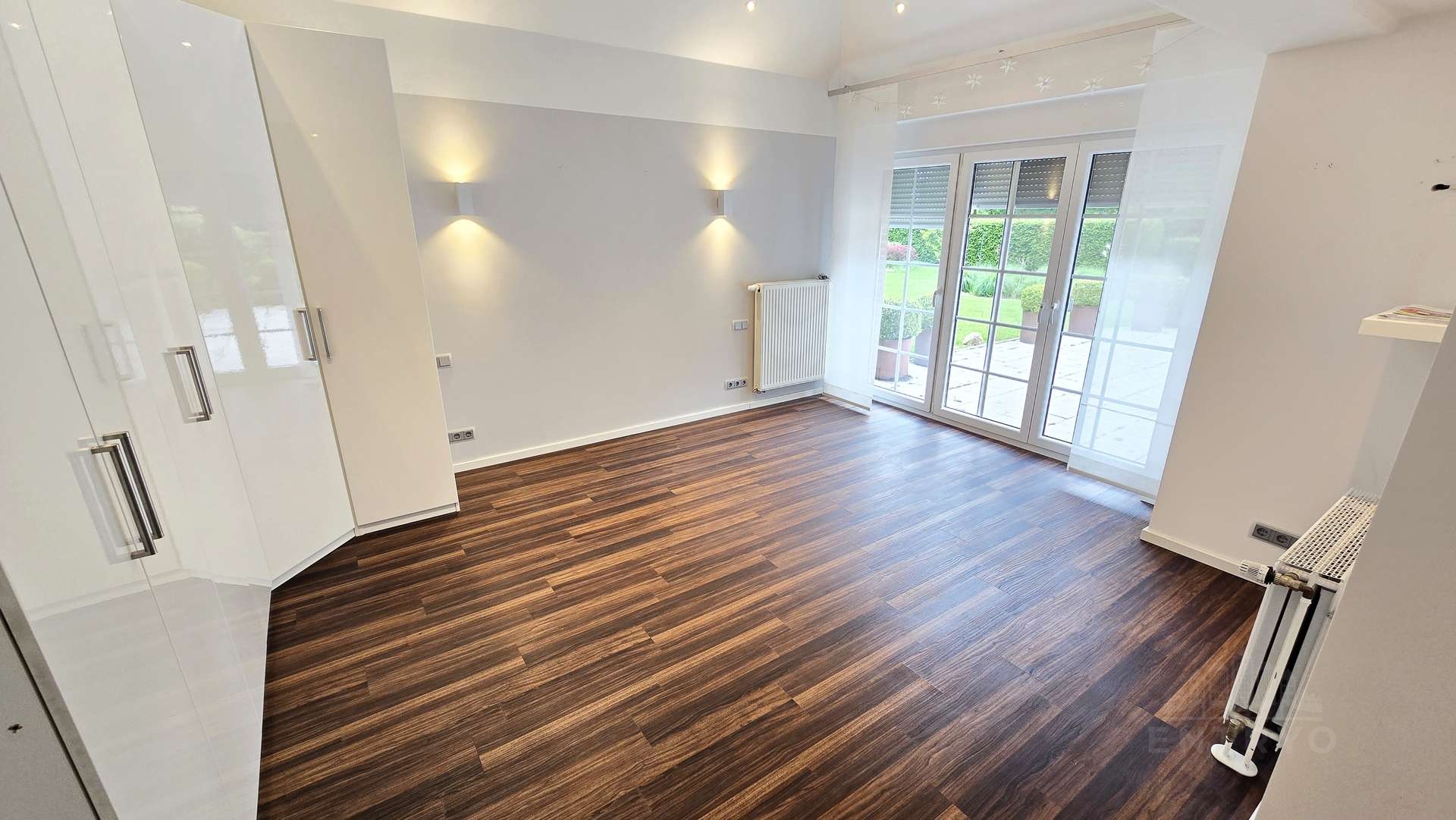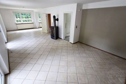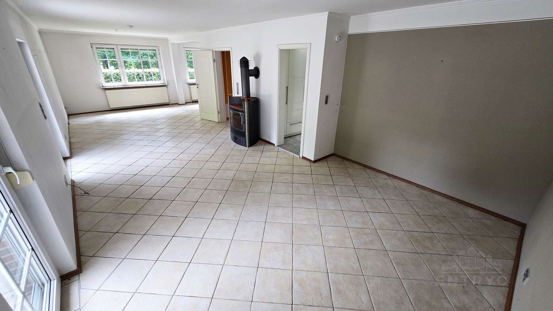 Das Herzstück des Hauses ist der großzügige Wohnbereich mit Kaminofen (Übernahme nach Absprache möglich) und direktem Zugang zur sonnigen Süd-/Ost-Terrasse – ausgestattet mit elektrischer Markise und traumhaftem Blick auf die idyllische Teichanlage.